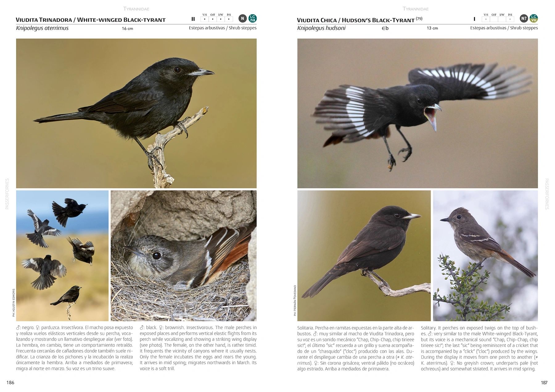 His photographs have appeared in books and magazines published by the National Geographic, Natural History Magazine, and Lynx Edicions, among others. A field ornithologist. He works as a guide for birdwatchers and nature photographers, along the Patagonian coast, in the Andes, central Argentina and the Falkland Islands. He has published several articles on the birds of northeast Patagonia.