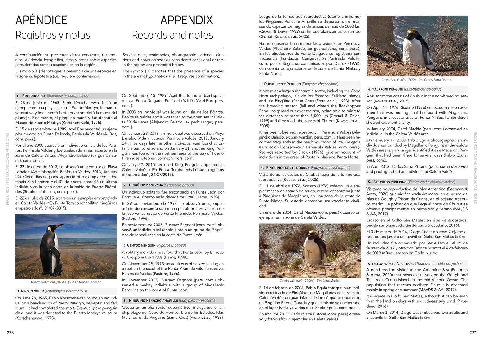 “For visitors to the Peninsula Valdes, site of a famous Magellanic Penguin colony, swirling clouds of Red Knots, and the enigmatic Magellanic ‘‘Plover,’’ this book is a long-awaited and stunning photographic introduction to the peninsula and coastal Chubut Province. The gorgeous photos delight the eye for their artistic beauty and composition, offer accuracy for help in identifying species encountered, and capture spectacular behavioral displays. The book’s emphasis is on the birds of the area, but the keen naturalist author could not resist tossing in photos of several mammals and herps as well. Painstaking search of the literature and records of museum specimens, published sightings, eBird, and personal correspondence makes this volume a valuable, updated documentation of the Valdes/Chubut avifauna.”