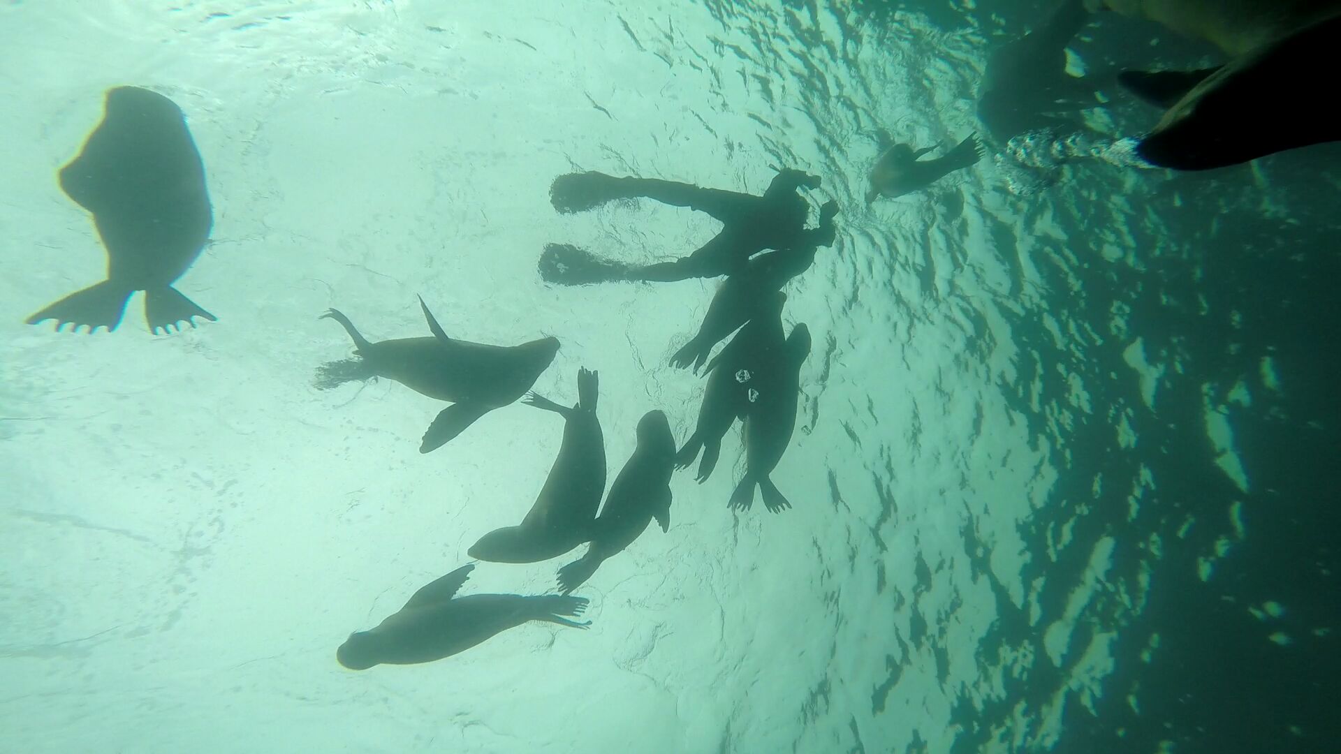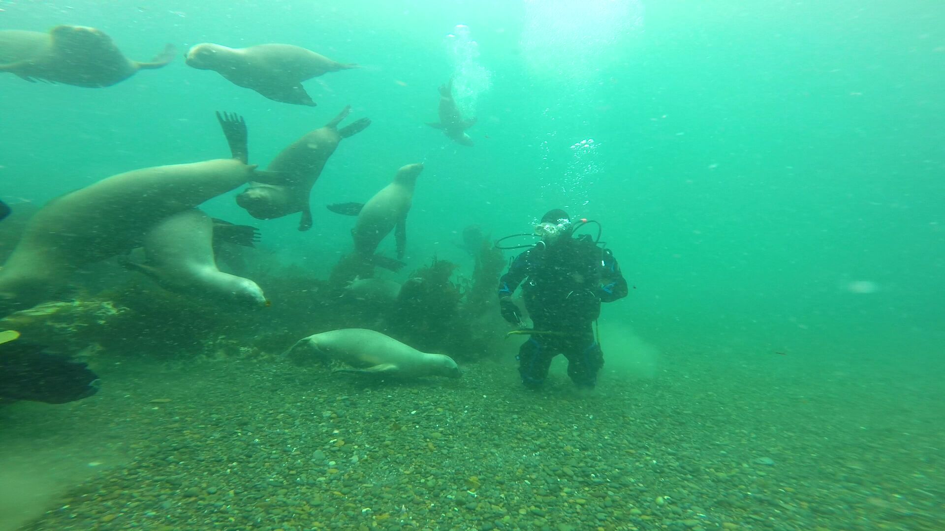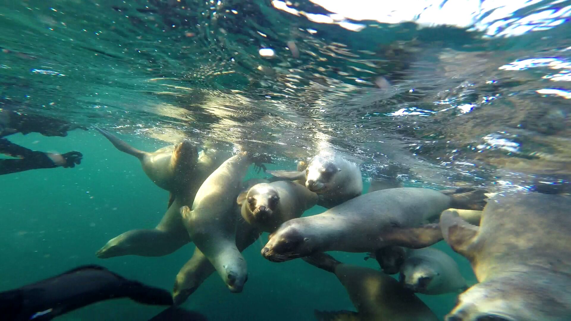 Just like sea lion snorkeling at the Punta Loma Nature Reserve, sea lion diving is a must-do because it’s one-of-a-kind worldwide. This haul-out hosts a stable population of approximately 600 animals, free and wild. After a ~20-minute boat ride to the Reserve, we enter the water for an unparalleled experience: there is no other colony on record where sea lions approach and interact with people the way they do here.